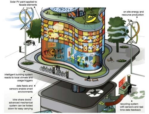 Inženjerska firma ARUP je zamolila javnost da zamisli zgradu budućnosti u svom najnovijem „Foresight“ izdanju. U članku pod nazivom „It's Alive“ (Živ je), projektantski tim je zamislio gradsku zgradu za 2050. godinu, koja obuhvata fleksibilne modularne mahune, urbanu proizvodnju hrane, klimatsko-svesnu fasadu i inteligentni sistem upravljanja zgradom.