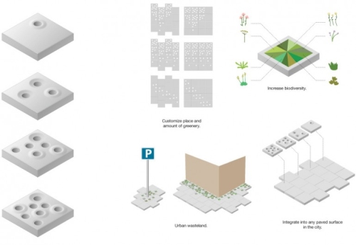 Dizajnerka Bram je uključila nekoliko različitih dizajna u njen koncept, sa različitim brojem otvora koji omogućavaju različite količine i vrste vegetacije da rastu. Ovo doprinosi lakom prilagođavanju, jer su sada gradski planeri u stanju da integrišu ovaj proizvod u svim postojećim popločanim površinama. Ovo ima potencijal da pretvori urbani pustoš u, ako ne u zelenu i prijatnu površinu, onda barem u lepše okruženje.