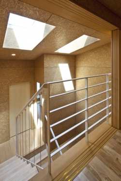 Dalje penjanje uz stepenice će vas dovesti do spavaće sobe za decu i kupatila. Centralni atrijum deluje kao fokalna tačka za članove porodice i putem svetlarnika pušta prirodnu svetlost, a po potrebi se on može i otvoriti i pustiti vazduh u unutrašnjost kuće. Unutrašnji zidovi i plafoni su napravljeni od drvenih panela, dok je hrastov pod rasprostranjen u celoj kući.