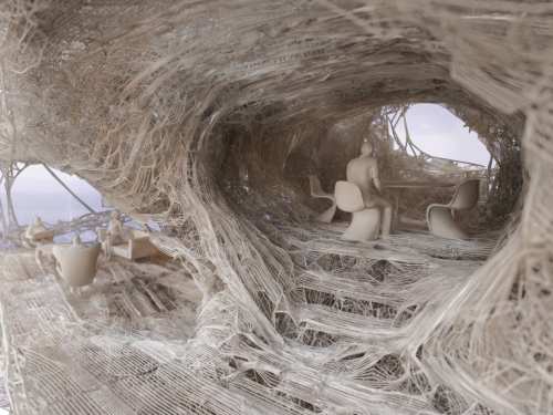 Razgovori o 3D štampanom stanovanju su naizgled, namerno ili ne, odavao poštovanje arhitektonskim metodama i tradicijama, formama i materijalima. Softkill prototip kuće liči na nastambu na koju biste naišli ako biste sve ove iznad sklonili u stranu i fokusirali se na sam 3D štampač. On liči na nešto što bi pauk napravio da je počeo da se mora po Arhitektonskom fakultetu (i, u izvesnom smislu, pauci i jesu samostalni 3D štampači, iako oni teže da rade u dve dimenzije).