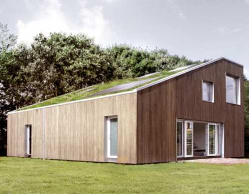 Kuća dalje odlikuje zeleni krov nagnut ka jugu (ili ka severu za južnu hemisferu), solarni paneli i svetlarnici. Zeleni krov takođe olakšava prikupljanje kišnice, koja se zatim čuva pod zemljom i koristi se za toalet, pranje veša i čišćenje kuće. Unutrašnji zidovi su obloženi sa termoizolacijom od 35cm, dok je eksterijer prekriven sa fasadom od bambusa.