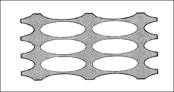 Ekstrudirane se proizvode najčešće od high-density polietilena ili polipropilena koju su ekstrudirani a zatim izvlačeni u jednom pravcu (mono-directional geogrids) sa naprezanjem na zatezanje u granicama 60-200KN/m ili izvlačeni u dva pravca (bi-directional) koje imaju manju vrednost naprezanja na zatezanje (20-30KN/m) ali zato jednaku u oba pravca (slika 6.)