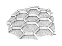 Geocell (slika 10.) se sastoji od ćelija postavljenih jedna do druge spojene trakama od ekstrudiranih sintetičkih materijala u formu saća. Osnovna funkcija geocell-a je da zadržava zemlju ili drugi rastresiti materijal na mestu kako bi sprečio klizanje rastresitog materijala niz kosinu.