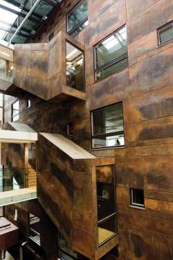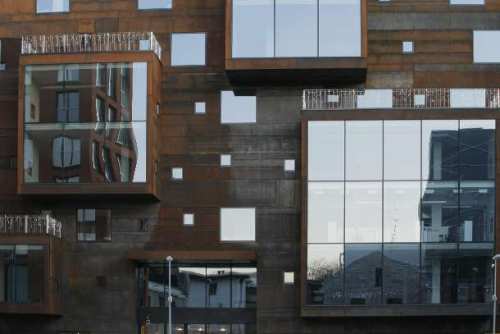 Kao glavni materijal u oblikovanju fasade upotrebljen je korten – specijalna vrsta čelika koji izgleda kao da je rđav, a u stvari je hemijski tretiran pri čemu dobija takav ton, dok je na pravu rđu potpuno otporan.