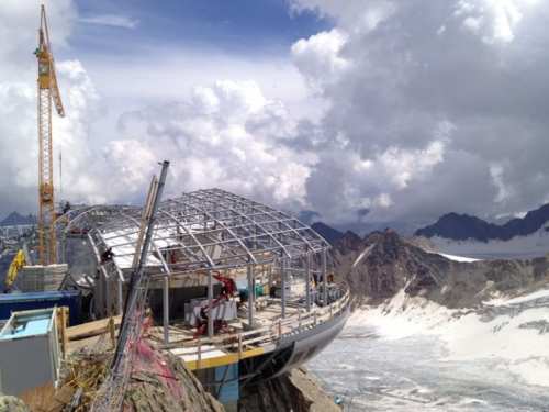 Izgradnja na vrhu jednog od najimperesivnijih alpskih evropskih predela uvek će biti izazov. Oko 20 miliona evra je je potrošeno u osamnaestomesečnoj dugoj gradnji koja je predstavljala izazove za radnike zbog nepredvidivih vremenskih uslova. Teški čelici i građevinski materijali su morali biti prevezeni helikopterom do bazne lokacije odakle su prebačene do vrha uz pomoć čekrka.