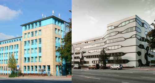 Ali detalji su sekundarni. Fotografije same prikazuju poentu da se uz malo mašte posleratne, ne baš toliko lepe zgrade mogu srediti bez pribegavanja skupim rušenjima i izgradnjom. Novi izgled objekta Schlump ONE deluje kao da je u pitanju u potpunosti novogradnja.