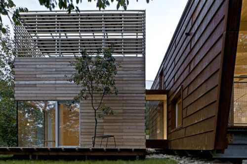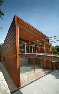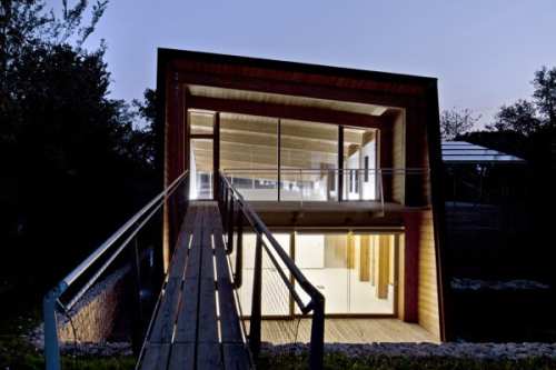 Dom ima dve pridruživajuće strukture koje su napravljene od netretiranog drveta arisa i Corten čelične ljuske. Obe strukture se nalaze malo iznad tla, i podržani su sa dve čelične temeljne grede koje idu po dužini. Okvirni sistem je pažljivo projektovan kako bi bio u potpunosti sakriven, a izabrana materijalizacija se takođe uklapa u okolni pejzaž.