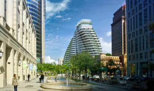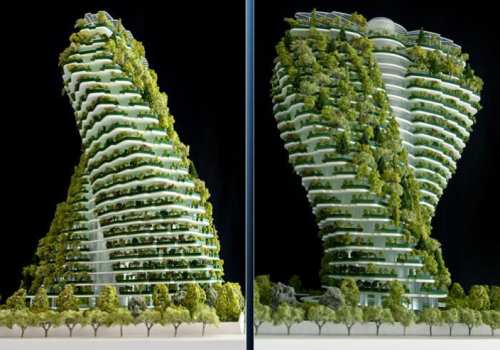 Izgradnja ovog neobičnog uvijenog nebodera, nazvan Agora Garden, nedavno je počela u Tajpeju, prema projektantima iz biroa Vincent Callebaut Architecte. Zaštitni znak ovog vertikalnog vrtnog stambenog bloka je inspirisan duplom spiralom DNK molekula.
