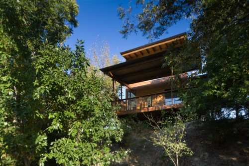Postoji nekoliko potencijalnih rešenja za takav izazov, ali predlog koji je predložio biro Shipley Architects je bio jedinstven, nov i isplativ - projektantski tim je podigao kuću na čelične štule od 18 metara visine, koji su podržani sa betonskim stubovima. Rečeno je da je ovaj pristup umanjio uticaj izgradnje na zemljište.