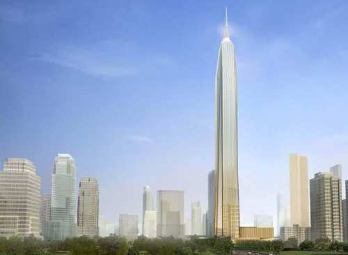 Izgradnja je sada zaustavljena na Ping'an međunarodnom finansijskom centru, koji je projektovan od strane američkog arhitektonskog biroa Kohn Pedersen Fox i koji se gradi od 2009. godine.