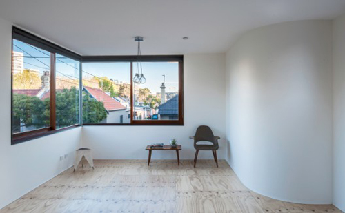 Čelični prozorski ramovi su isečeni iz forme i produženi preko linije parcele i ulice, otvarajući prozor koji je nekada bio bez prirodnog osvetljenja. Materijali koji su korišćeni su ostavljeni sirovi i iskreni, a sve u duhu njene industrijske prošlosti. Zapadna strana je odevena u izraženim fibro-cementnim panelima dok drveni podovi i stolarija dodaje na toploti u unutrašnjosti.