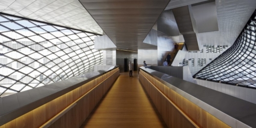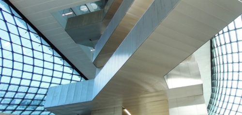 Možda bitnije jeste činjenica da je to zaista lep atrijum, sa upečatljivim aluminijumskim stepenišnim tornjem u samom centru. Stepenište, koje se zavija oko centralnog kvadratnog jezgra, se grana na poseban način i, uvija se kao nešto što bi možda M. C. Ešer mogao da iskonstruiše.
