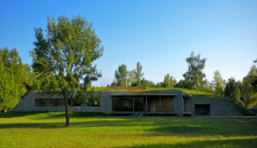 Privatna lovačka kuća biroa Basarch nalazi se u lovočuvarskom području blizu grada Lednice na jugu Češke. Jedna strana linearne kuće je ukopana kako bi je zaštitila od buke obližnjeg autoputa. Zeleni krov raste i pokriva dom kako bi ga dodatno obložio i zaštitio, pružajući mu istovremeno veću izolaciju. Ukopavanje i zeleni krov efikasno zamenjuju zeleni prostor koji je skinut kako bi se izgradila kuća, pružajući infiltraciju kišnice i prirodno stanište za biljke i životinje.
