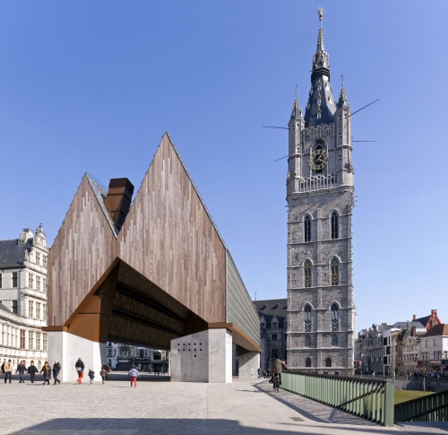 Ova izuzetna tržnica u Gentu, Belgija je delo partnerstva između biroa Daem Architecten i Marie-Jose Van Hee Architecten. Bodljikava struktura prostire se na preko 24.000 metara kvadratnih lokacije koja je nekada bila dom pustog parkinga u centru Genta, deleći prostor između tornjeva crkve Svetog Nikole, zvonika i katedrale.