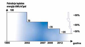 Slika 1. Smanjenje potrošnje toplotne energije kWh/m² godišnje za stan u periodu od 1995.