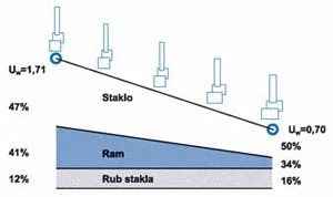 Slika 2. Smanjenje koeficijenta prolaza toplote kroz prozor od 1995. do 2012. godine