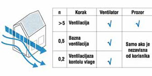 - Ventilacioni toplotni gubici, koji u poređenju sa transmisionim toplotnim gubicima znatno rastu, moraju biti smanjeni koliko god je to moguće.