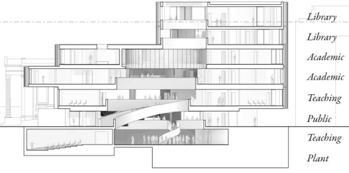 Niži nivoi će smeštati nastavne i javne prostore, dok će mirniji viši nivoi biti okupirani od strane akademskih i istraživačkih programa. Gornji nivo će sadržati biblioteku koja će nadgledati otvorenu terasu. Očekuje se da će objekat biti završen 2015. godine.