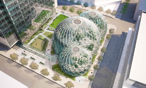 Ako kompanija Apple može da ima sedište u obliku svemirskog broda, onda i kompanija Amazon može imati biosfere. Iako kompanije ne stvara potpuno samostalan ekosistem tako da njeni zaposleni nikada ne moraju da napuste posao, predata dokumentacija Građevinskom zavodu grada Sijetla ukazuju da ona planira da izgradi nešto slično u svom novom sedištu u Sijetlu.