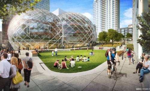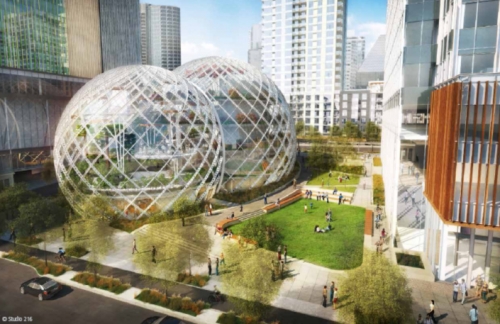 Uobičajeno je da korporacije sa sedištima u državi Vašington grade svoje kampuse u prigradskim naseljima, ali kompanija Amazon napušta taj trend gradeći svoje sedište na kampusu veličine 30,65 hektara u centru Sijetla. To je najveći projekat u istoriji grada i kupole (sfere) su deo predloga revizije dostavljenog gradskoj vlasti prošle nedelje.