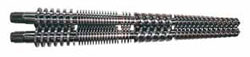 Za ekstruziju kompozita sa drvenim vlaknima (kao i ostalim prirodnim vlaknima), kod velikog broja prerađivača superiornim se pokazao dvopužni konusno kontrarotirajući ekstruder (slika 3), iz sledećih razloga: