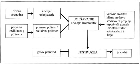 Proces proizvodnje kompozita drvo–polimer sastoji se od sledeć ih faza koje su šematski prikazane na slici 1.