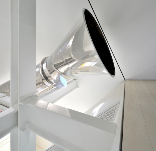 Ulaz u cevasti tobogan od nerđajućeg čelika ispoliranog tako da daje efekat ogledala može biti pronađen u južnom delu potkrovlja. Ljubitelji avanture dobijaju žuto kašmir ćebe koje se nalazi na gomili pored ulaza, kako bi dobili maksimalnu brzinu u svom putovanju kroz tobogan.