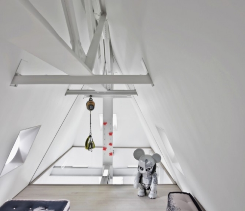 Glavni životni prostor na više nivoa zauzima severni deo penthausa, i on koristi celu visinu od 15 metara stana. Dekor je odrađen od strane dizajnera enterijera Gislajna Vinasa, i potpuno funkcionalni stub za penjanje se lepo uklapa u celokupnu temu kuće.