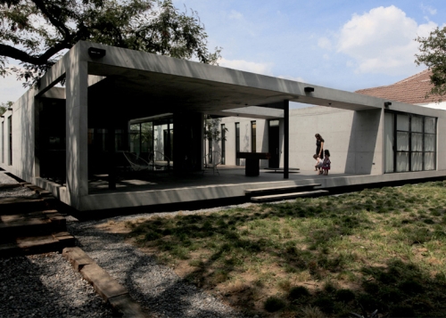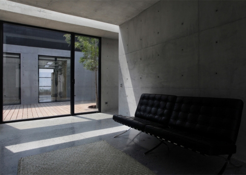 Osamljeno dvorište je sakriveno iza dramatične betonske fasade ove kuće u Nuevo Leonu, Meksiko, projekat biroa Stación-ARquitectura iz Montereja. Porodična kuća, nazvana Casa 2G, postavljena je na pravougaonoj parceli. Dvorište u obliku slova L deli kuću na dve polovine, sa dnevnim prostorom na jednoj strani i spavaćim sobama na drugoj strani.