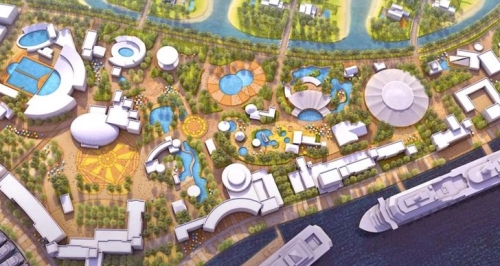 Oryx ostrvo od dva miliona kvadratnih metara će se sastojati od pet privremenih plutajućih i tri stalna hotela, otvorenog pozorišnog paviljona i od ukupno 234 luksuznih vila. Arhitektonski biroi HOK i ABS Architects su angažovani da projektuju plutajuće ostvro u obliku Oriks antilope koje je autohtona vrsta na Arapskom poluostrvu. Ostrvo će ugostiti 25.000 ljudi, dok će se njihov transport do sportskih objekata obavljati električnim vozilima, vodenim taksijama i trajektima.