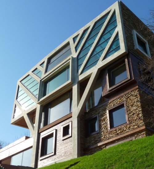 Dom se uklapa u postojeću peščanu jamu, pružajući kompaktnu strukturu koja ispunjava prazninu bez ometanja prirodnog okruženja. Muzička soba i konzervatorijum se nalaze na vrhu kuće, smanjujući kontaktnu površinu zgrade sa tlom uz upijanje dosta sunca i pružanje prelepih pogleda.