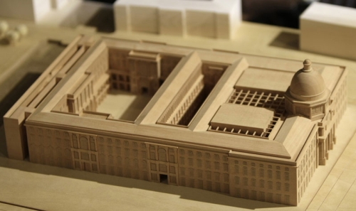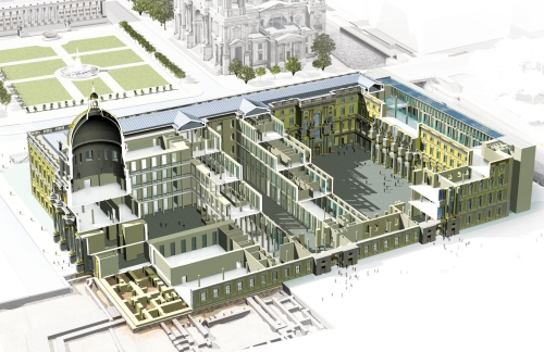 Najveći deo fasade nove palate, koju je dizajnirao italijanski arhitekta Franko Stela, biće napravljen od replika originalne Hohencolern palate čiji najstariji delovi datiraju iz 15. veka iako je najveći deo izgrađen početkom 18. veka.