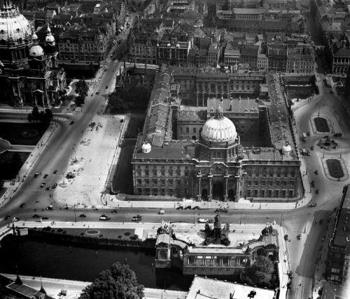 Originalna palata teško je oštećena tokom savezničkog bombardovanja u Drugom svetskom ratu, a ostatke su komunističke vlasti uništile 1950.