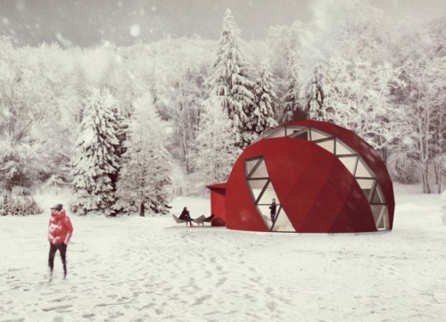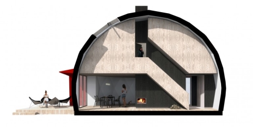 Letonski arhitektonski biro NRJA obelodanio je svoje planove da proizvede vanmrežnu geodetsku kupolu sa enterijerom koji izgleda kao da bi trebao da se nalazi u dvospratnoj luksuznoj kući. Tim mladih arhitekata, sa prosečnom starošću od 25 godina, osmislio je ubedljiv dizajn koji će se u narednim mesecima naći na tržištu. Nazvana DOM(E), prefabrikovana struktura može da izdrži najhladnije ili najtoplije klime, i zbog svog kružnog oblika, ona prikazuje inteligentno korišćenje relativno malog prostora od 120 metara kvadratnih.