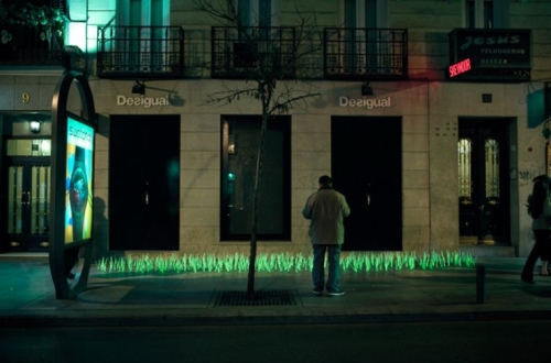 Veštačka trava je delo umetničke kolektive Luz Interruptus, i ona predstavalja izjavu o rastućem problemu svetlosnog zagađenja. Kao i mnogi veliki gradovi, Madrid baca veliku količinu lumena - toliku da astronauti na Međunarodnoj svemirskoj stanici vide sve gradove u bojama vatre na površini zemlje (fotografija ispod - levo dole je Lisabon, dok je u sredini Madrid).