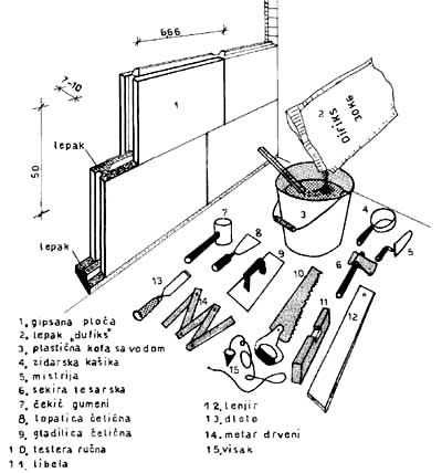 Alat i materijal za pregrade od gipsa