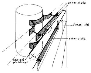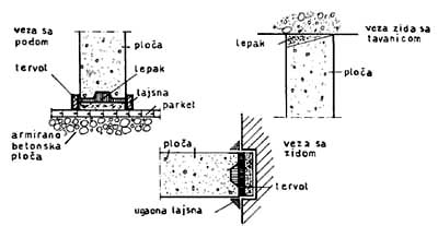 Sl. 4.4 Veze pregrade sa zidom, podom i plafonom