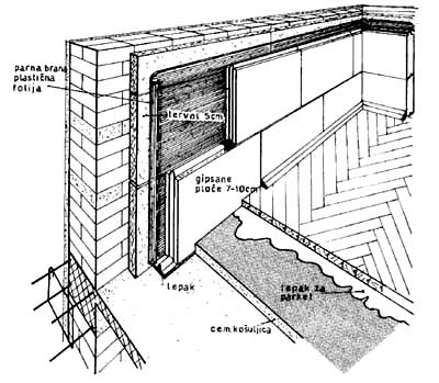 Sl. 4.11 Pojačanje termoizolacije spoljnog zida tervolom i zidom od gipsanih ploča