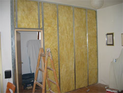 Mineralna vuna se ugrađuje po ugrađivanju kablova. Na kraju se postavlja gips-kartonska ploča i sa druge strane (sl. 4.13).