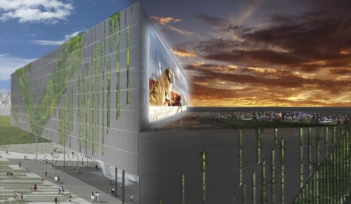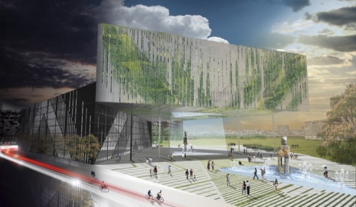 Fasade javne biblioteke i muzeja lepih umetnosti su perforirane sa malim rupama na ključnim tačkama kako bi omogućilo iskorišćavanje prirodnog osvetljenja, a zeleni krov je upotpunjen sa vertikalnim vrtovima. Obe zgrade imaju po 18.500 kvadratnih metara, i postavljene su u obliku paralelograma.