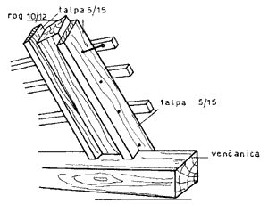 Ako u krovnu ravan treba ugraditi prozor širine veće od razmaka među rogovima, onda jedan rog treba preseći, deo njegove dužine odstraniti, a preostale delove prihvatiti (vekslovati) gredicama prihvatnicama koje se oslanjaju na susedne rogove (sl. 9.7).