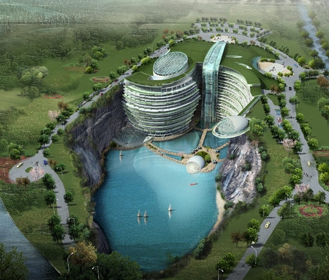 Izgradnja hotelsko-turističkog kompleksa koji će se ugnezditi u 100 metara visokoj litici napuštenog kamenoloma ispunjenog vodom nadomak Šangaja je započela. Veliki vodopad će se izlivati sa krova hotelskog kompleksa od 19 spratova, koji će imati deo svog tela ugrađenog u pećinu i dva sprata koji će biti potopljeni pod vodom.