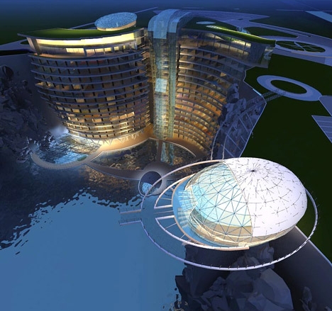 Objekat hotela sa raznim sadržajima će konzolno visiti preko kamenoloma, nudeći posetiocima mogućnost slobodnog penjanja i bandži džampinga, i tu će takođe postojati podvodni restoran sa deset metara dubokim akvarijumom.