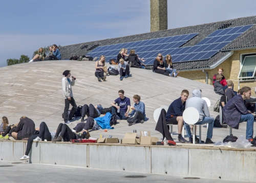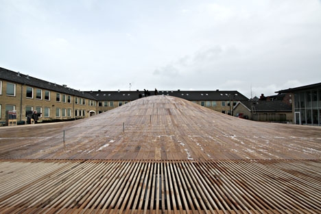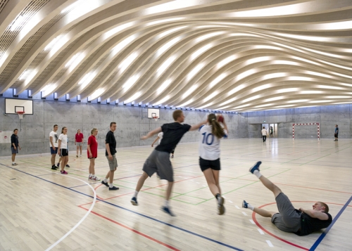 Danski arhitektonski biro BIG je nedavno završio potopljenu sportsku salu gde lučni drveni krov služi i kao brdovito dvorište. Srednja škola Gammel Hellerup je zatražila od biroa BIG da projektuje novu zgradu koja može biti korišćena za sportske sadržaje, diplomske svečanosti i društvene događaje.