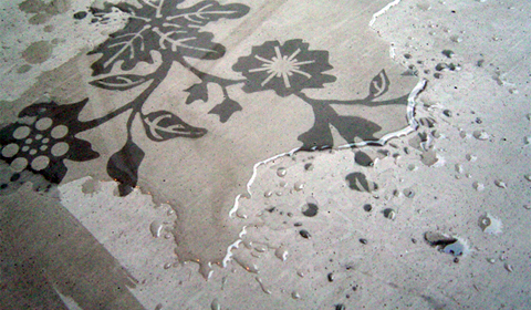 Ako ste pomislili da ste videli sve što se može učiniti sa betonom, spremite se za još jedno iznenađenje. Razvijena od strane holandskih dizajnera Frederika Molenšota i Suzan Haple, Solid Poetry je betonska pločica koja otkriva šablon kada je mokra. Cvetni obrasci prikazani ovde su rezultat pažljivo primenjene površinske obrade koja se otkriva samo kada je izložena vodi ili vlažnom vazduhu.