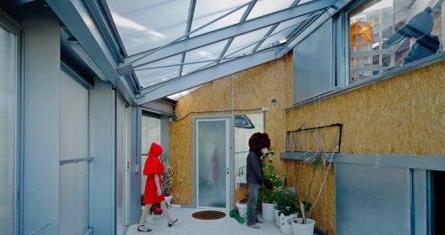 Čelični kablovi su opremljeni na spoljašnjosti tri strane kuće kako bi omogućili slobodno penjanje biljkama koje rastu, i za koje se nada da će na kraju proizvesti zeleni zid. Na vrhu, krovna bašta obezbeđuje slobodni prostor za opuštanje i pruža poglede na okolne planine.