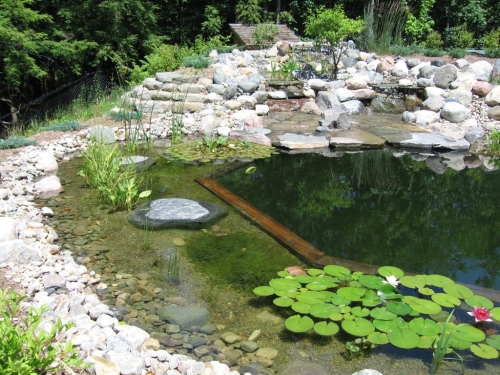Deo za kupanje se kao i kod konvencionalnih bazena, zida od betona, a prirodnim padom kroz prelivne kanale voda ide do zone za regeneraciju. U zoni regeneracije, prečišćavanje vode obavljaju razne nadvodne i podvodne biljke. Pomno odabrane biljke oduzimaju hranljive materije iz vode, koje otpuštaju mikroorganizmi tokom procesa razgradnje štetnih klica i organskih supstanci. Takođe, stavlja se i šljunak koji ima ulogu filtera za dodatno prečišćavanje vode.