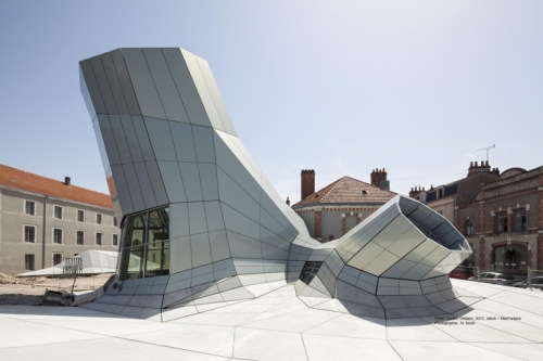 Pariski arhitektonski biro Jakob+MacFarlane projektovao je ovu prefabrikovanu cevastu strukturu kao dodatak Centra regionalnog fonda za savremenu umetnost (FRAC) u Orleanu, Francuska, kao kontejner za umetničke kolekcije i mesto za arhitektonsko eksperimentisanje. Fluidni dodatak zgradi iz 19. veka će biti otvoren 14. septembra.