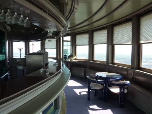Nameštaj za restoran na vrhu kula, otvorenih 1980, kupljen je u Danskoj, a arhitekta kaže da je kao projektant “sto puta“ bio gost 35. sprata na kome su i usluga i hrana bili vrhunski.