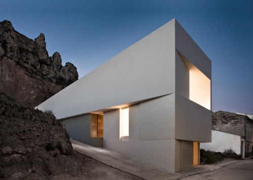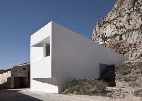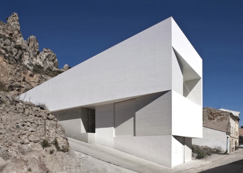 Ova blistavo bela kuća u obliku klina, delo arhitektonskog biroa Fran Silvestre Arquitectos, izbija iz litica koja se nalazi iza nje u dolini grada Ajora, blizi Valensije u Španiji. Krov pod nagibom odražava nagib okolnog terena, stvarajući trouglasta uzvišenja na stranama ove trospratne zgrade.